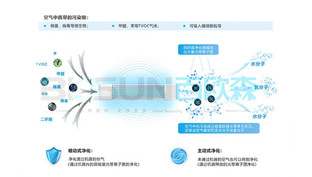 不造成二次污染:百歐森光等離子技術把空氣中各種污染物的化學結構徹底分解,并轉化成無害物質,如二氧化碳、氧氣及水分子等,解決部分傳統凈化技術于凈化過程中持續積聚污染物的問題。
